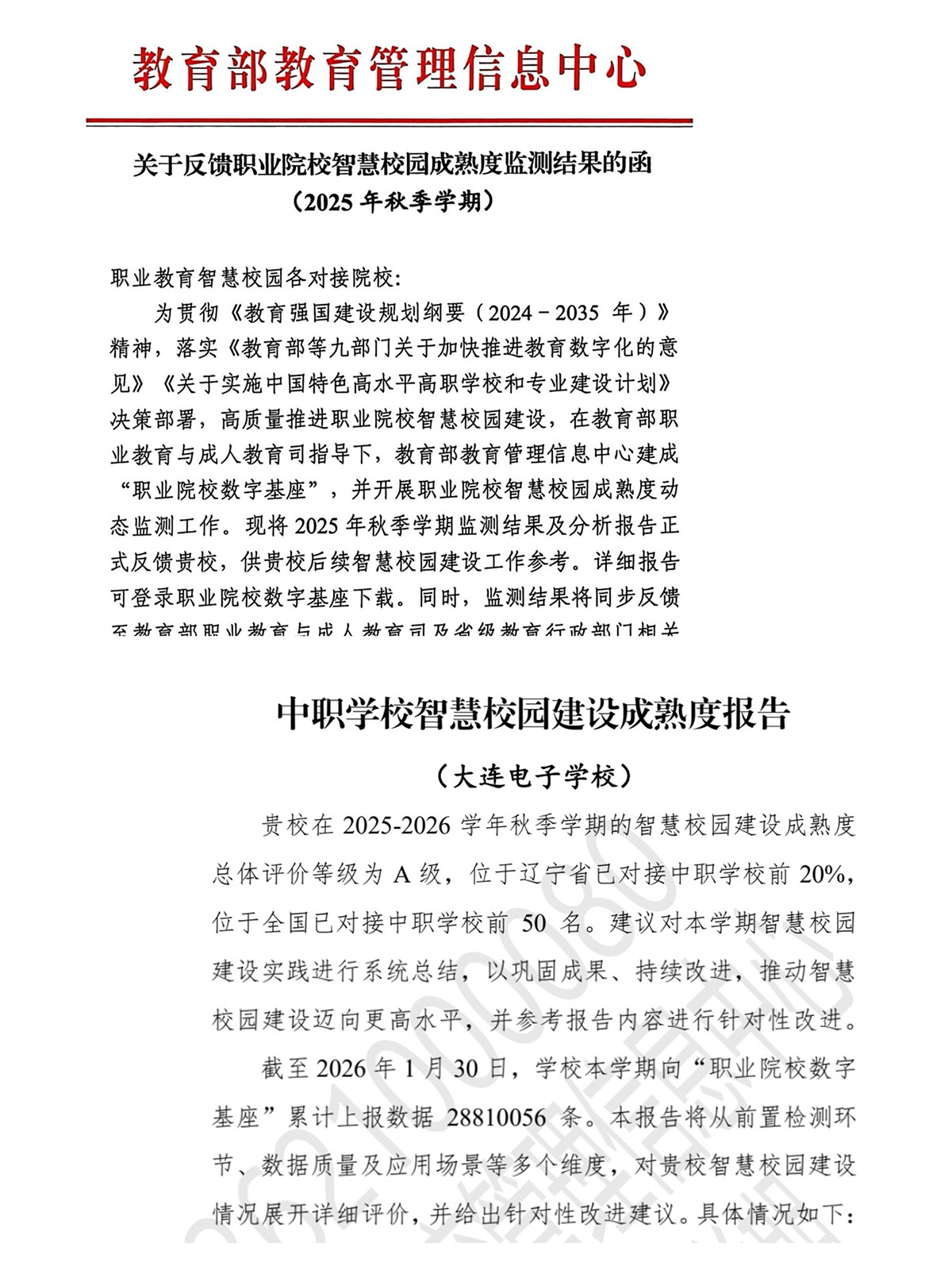 我校蝉联教育部智慧校园建设成熟度A级评价